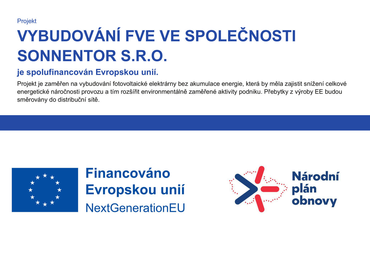 V rámci stavby nové části areálu společnosti SONNENTOR budujeme na střeše nové haly Solis fotovoltaickou elektrárnu o výkonu 0,146 MWh, která nám pomůže v částečné energetické soběstačnosti. Tuto investici můžeme zrealizovat i díky dotační podpoře z Národního plánu obnovy.