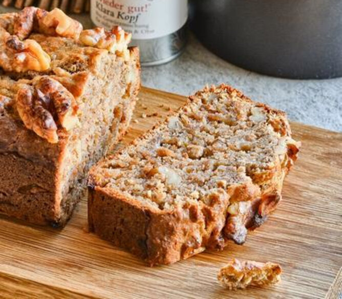 Vláčný chléb s banány a ořechy skvěle zasytí.