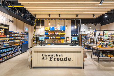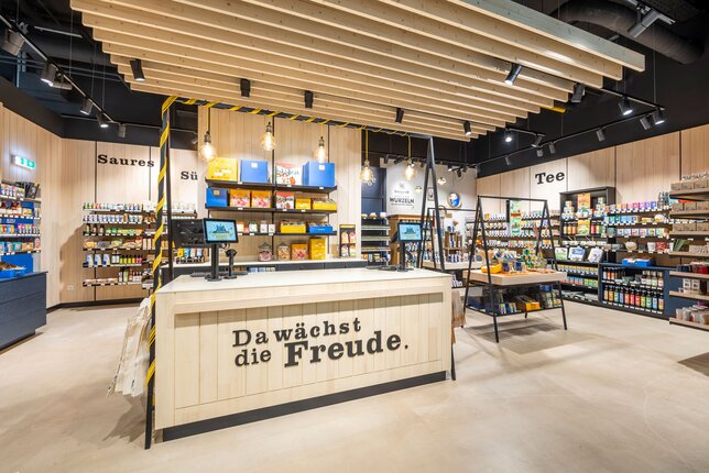 Wirf einen Blick in das SONNENTOR Geschäft - mit einem Klick ins Bild kannst du ganz einfach einen Rundgang machen: