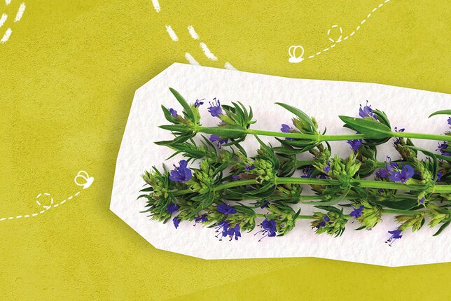 Wusstest du, dass Ysop übersetzt „heiliges Kraut“ bedeutet? Das überrascht uns nicht, denn ihm werden vielfältige gesundheitliche Vorteile zugeschrieben. Kräuter-Koryphäe Hildegard von Bingen setzte diesen "Wunderwuzzi" zur Stärkung von Leber und Lunge ein. Ausgekochter Ysop wurde im Mittelalter aber auch zum Einfärben von Seide verwendet.